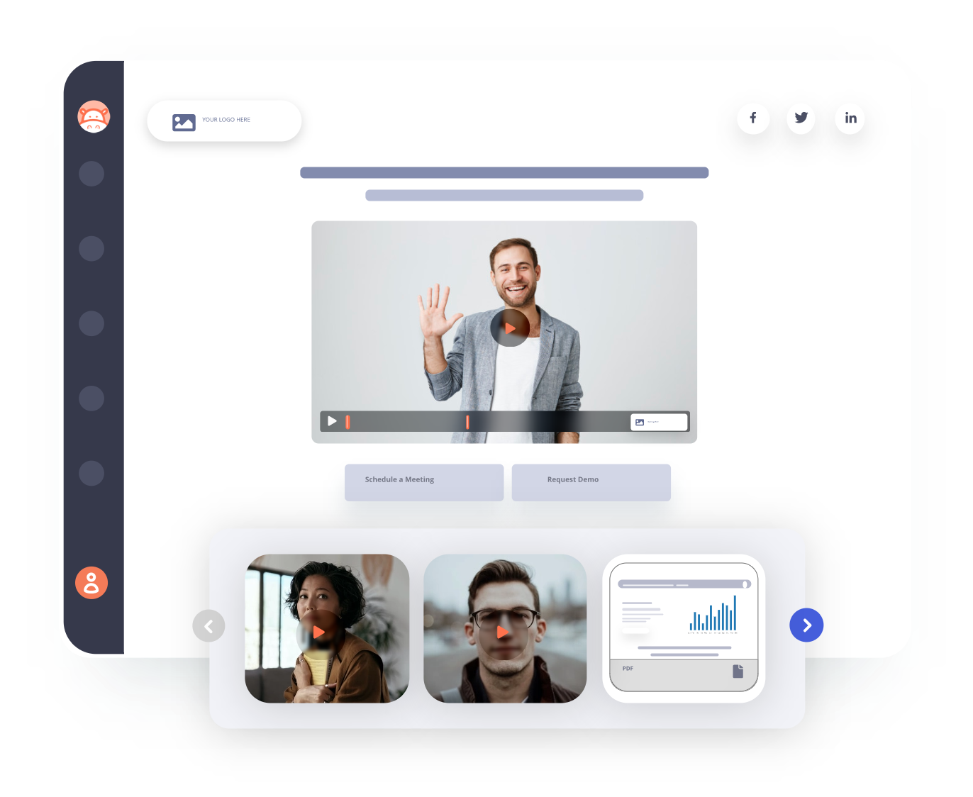 Deliver videos in customizable sales pages with your brand colors, company logo, and contact information. Personalize the video and title with your recipient’s name, company name, or contact. Add curated video content, documents & links on the page to upskill & nurture prospects at any stage of the funnel.